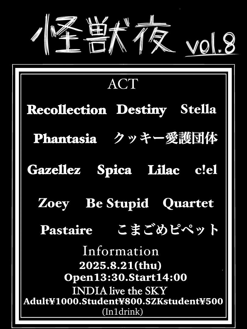 act: こまごめピペット/Pastaire/Be Stupid/Quartet/clel/Lilac/Zoey/Spica/Gazellez/クッキー愛護団体/Phantasia/Stella/Destiny/Recollection